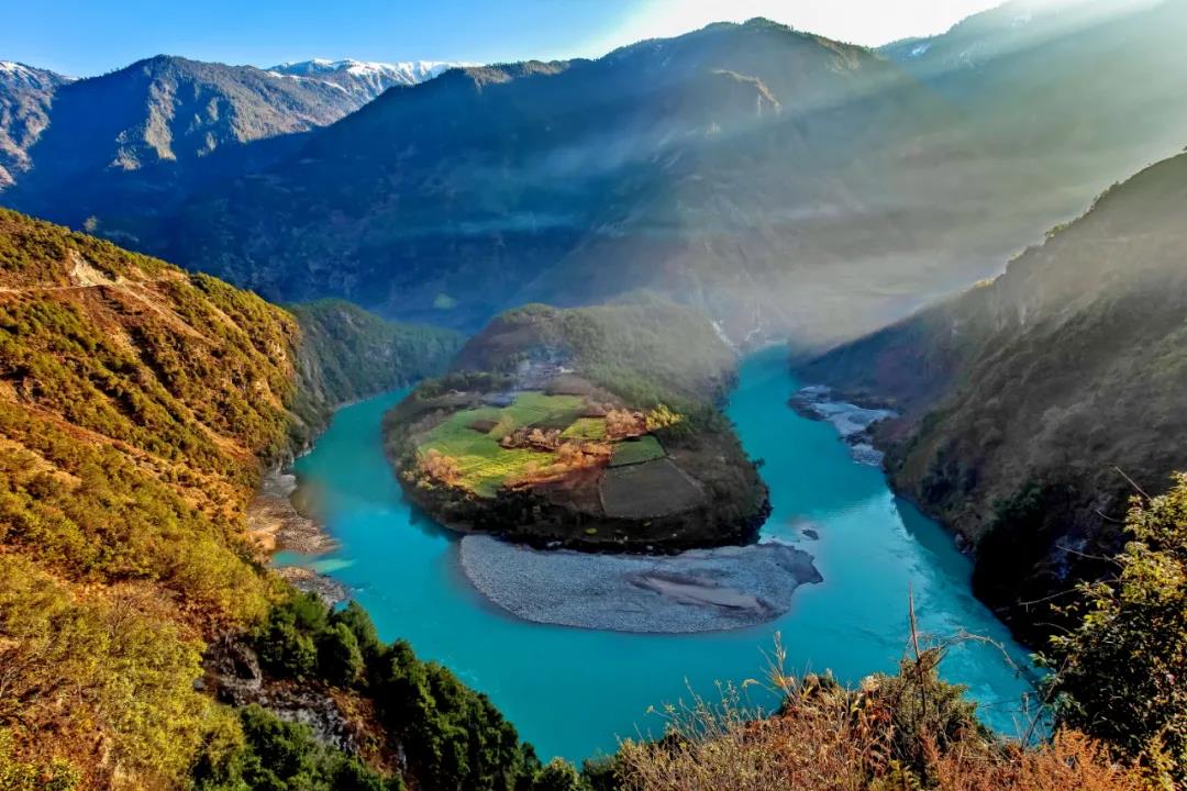從空中俯瞰,怒江從孤峽絕壁中疾馳而來(lái),歷經(jīng)億萬(wàn)年沖刷著僵冷的石塊,才展覽成一道能令世界矚目的奇觀。