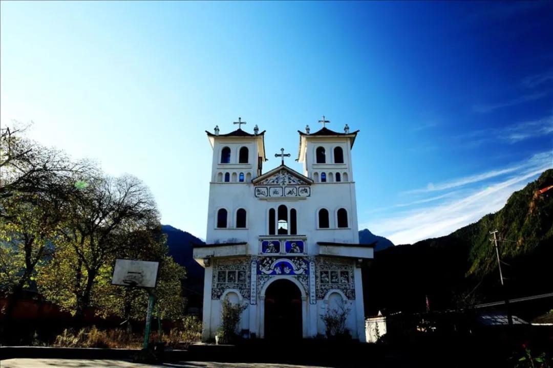 大山深處的哥特式建筑風(fēng)格,堪稱怒江大峽谷中最漂亮的天主教堂。由法國(guó)傳教士任安守耗時(shí)10年于1935年建成,“文革”期間被毀,1996年在原址重建,規(guī)模較之原來(lái)的小些,即使略顯簡(jiǎn)陋,但也令人驚嘆,深山之中崇拜自然的民族也會(huì)有不同的信仰。