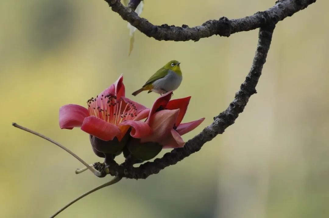 每年春節(jié)前后木棉花開時,吸引著眾多的動物來啄食花朵、吸食花蜜和為其傳粉。木棉樹成了蜜蜂、木蜂、倭松鼠、印支松鼠、白喉紅臀鵯、灰腹繡眼、長尾縫葉鶯、灰卷尾、藍喉擬啄木鳥等動物的樂園。