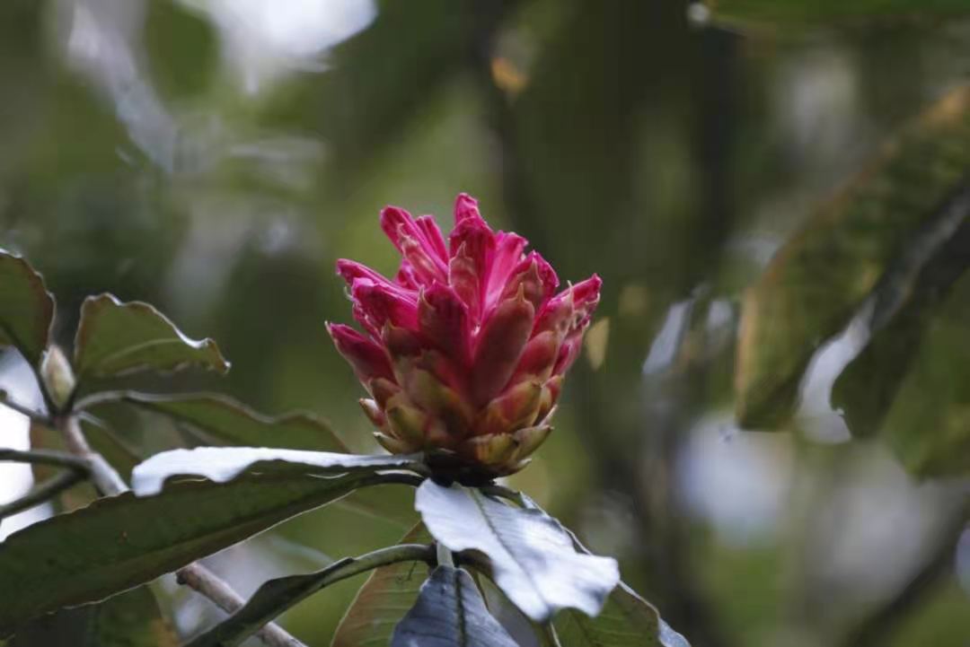 火紅的大樹(shù)杜鵑群領(lǐng)百花,層林盡染