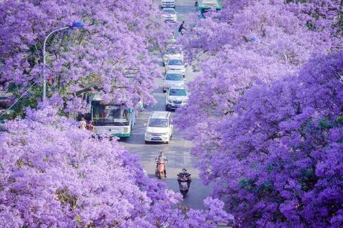 藍花楹以沉靜之色,讓人念念不忘,綻放的藍花楹,像悄然探出頭去的小精靈。