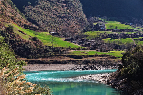 怒江大峽谷是多種文化的結(jié)合部。在大峽谷的北端,有一塊美麗、富有、神秘的壩子,藏語稱為“丙中洛”,意思是藏族居住的村寨。在這塊壩子里,藏、怒、傈僳、獨龍、納西、漢6個民族共居。