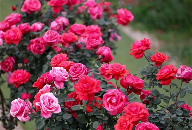 小沙壩月季莊園于2022年被列為瀘水市十大莊園。初夏時(shí)節(jié),沿著寬敞的水泥路走進(jìn)小沙壩月季莊園,只見百畝月季花正競相綻放,紅的像火,白的像雪,粉的如霞,姹紫嫣紅的花兒在風(fēng)中翩翩起舞。月季花容秀美,姿色多樣,四時(shí)常開,深受人們的喜愛。
