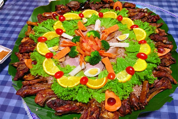 游玩一整天的疲倦當(dāng)然要讓美食來治愈,來到怒江一定要品嘗具有民族特色的傈僳族手抓飯。在傈僳族的文化里,不用筷子的手抓飯才是招待客人的最高禮節(jié)。手抓飯的靈魂就是“自由”,先抓一點(diǎn)米飯,再根據(jù)自己的口味添加不同的食物,握攏后就可以享受美食啦!