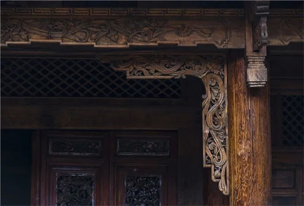 門上鏤刻動(dòng)物、植物、福壽等圖案