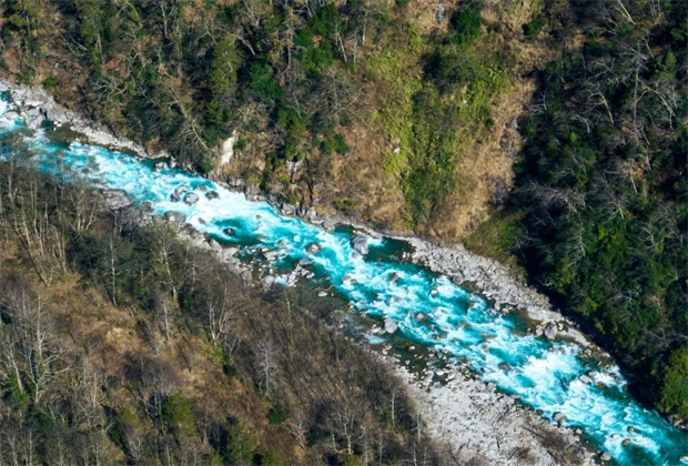 (獨(dú)龍江奔騰不息,形成兩山夾飛流的高山峽谷。人民網(wǎng) 蔡樹菁攝)